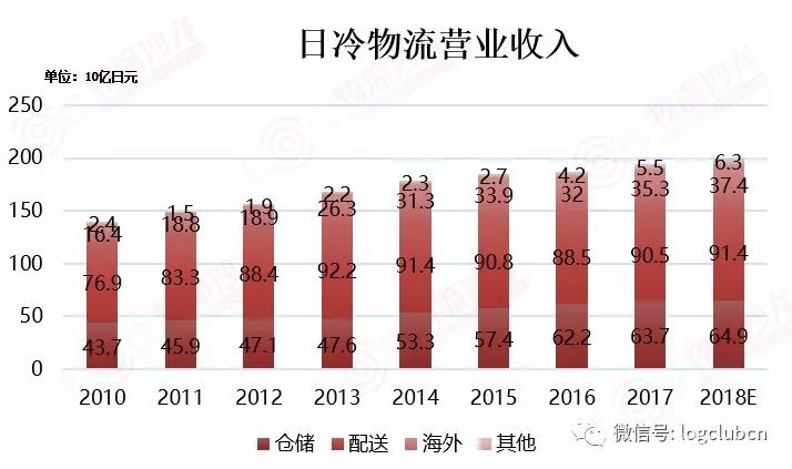 日冷物流集團(tuán)是日冷集團(tuán)旗下的子公司,通過(guò)開(kāi)展以倉(cāng)配為核心的物流網(wǎng)絡(luò)事業(yè)以及地區(qū)保管事業(yè),一直支撐著日本的“飲食”。另外,在海外(歐洲、中 國(guó))也設(shè)有冷藏庫(kù)和物流中心,包括國(guó)內(nèi)及海外的關(guān)聯(lián)企業(yè)在內(nèi),共分布在113個(gè)地區(qū),冷蔵保管能力高達(dá)180萬(wàn)噸。在日本國(guó)內(nèi)屬于最大規(guī)模,世界屬于排名第五。2018財(cái)年日冷物流為日冷集團(tuán)貢獻(xiàn)營(yíng)收1,951億日元(約118億人民幣),占日冷集團(tuán)總營(yíng)業(yè)收入的33.2%。
