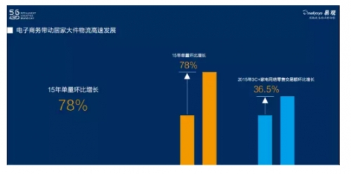 1、 電子商務帶動居家大件物流高速發(fā)展:2015年單量環(huán)比增長78%,物流發(fā)展跑贏大盤。
