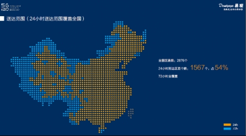 3、全國無盲區(qū)覆蓋:基于網(wǎng)絡的發(fā)展,數(shù)據(jù)的運用,24小時到達區(qū)縣個數(shù)1567個,占 54%;72小時全國零盲區(qū)覆蓋。