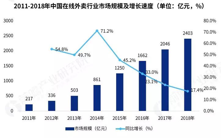 從本地生活細分領(lǐng)域來看,餐飲行業(yè)持續(xù)快速增長,特別是火鍋等行業(yè)迅速崛起,2018年全年市場規(guī)模達到4.4萬億元。大體量的餐飲市場給外賣行業(yè)創(chuàng)造了機會。