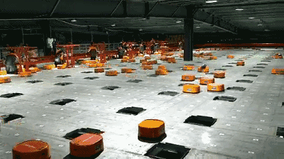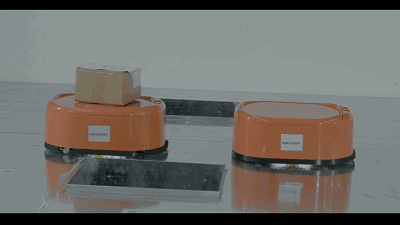 視頻中,這些裝備著橙色托盤的機器人在地面上有序“穿梭”,將一件件包裹運送到指定位置,完成分揀。