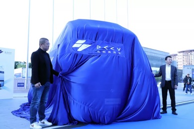 (廣東省新能源汽車發(fā)展服務中心副理事長徐川與天際汽車電咖商用車總經(jīng)理王鵬共同為新車揭幕)