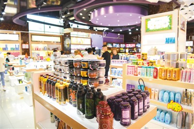 中哈霍爾果斯國際邊境合作中心的一家免稅店?! ⌒氯A社記者 胡虎虎攝