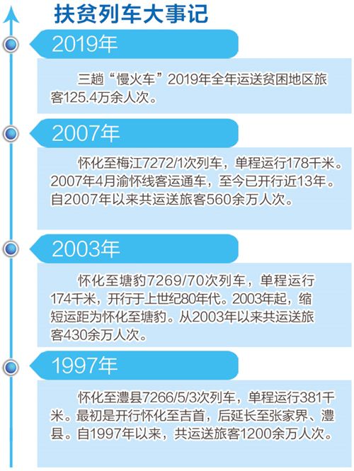 “慢火車”幾十年如一日運行在湘渝黔武陵山區(qū),這里沿線聚居著苗、侗、土家族等少數(shù)民族,經(jīng)濟欠發(fā)達(dá),貧困程度深,是國家脫貧攻堅的重點區(qū)域。為方便沿線百姓人、貨往來方便,列車允許乘客肩挑背扛大量山貨乘車,更有不少學(xué)子靠乘坐慢火車,走完求學(xué)之路。扶貧“慢火車”已成為山區(qū)困難群眾致富奔小康的希望之路。