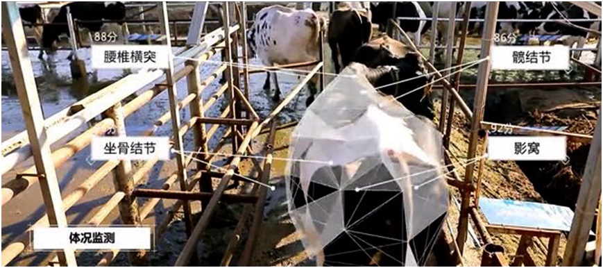 對(duì)產(chǎn)奶期的奶牛來說,它們的體況是否健康尤其重要,直接關(guān)系到奶制品的品質(zhì)安全。而傳統(tǒng)的體況評(píng)估,需要依托有經(jīng)驗(yàn)的養(yǎng)牛專家到現(xiàn)場(chǎng)對(duì)牛進(jìn)行近距離的觸摸才能做出判斷?!敖Y(jié)合AI算法,可無接觸自動(dòng)化對(duì)牛的體況進(jìn)行評(píng)分。通過在牛場(chǎng)通道部署深度傳感器與深度攝像頭等智能化設(shè)備,俯拍路過的奶牛,再通過圖片分割模型、3D點(diǎn)云分析等技術(shù),便可智能化生成牛只體況得分情況,如此極大簡(jiǎn)化了傳統(tǒng)人工勞作?!本〇|數(shù)科數(shù)字農(nóng)牧相關(guān)負(fù)責(zé)人介紹道。