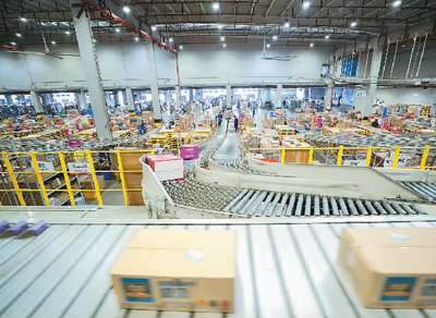 3月16日,在重慶國(guó)際物流樞紐園區(qū)的永輝物流配送中心常溫庫(kù),自動(dòng)化分揀系統(tǒng)正在分發(fā)超市各門(mén)店所需的貨品。  黃 偉攝(新華社發(fā))