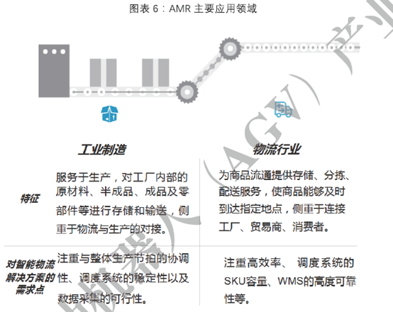 目前,在工業(yè)物流領域,AMR的主要應用場景可以分為兩大類,物流行業(yè)和制造業(yè),應用場景的不同,對物流設備的要求也會有一些差別。