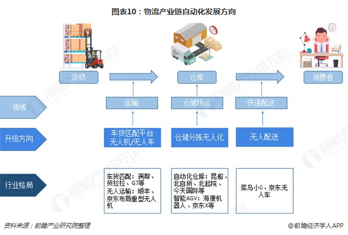 ——降本增效驅(qū)動(dòng)自動(dòng)化。國(guó)家推動(dòng)物流行業(yè)降本增效,提高整個(gè)社會(huì)的貨物流通運(yùn)轉(zhuǎn)效率,同時(shí)新零售的提出對(duì)倉(cāng)儲(chǔ)運(yùn)輸環(huán)節(jié)的效率提出了更高的要求。在運(yùn)輸和配送環(huán)節(jié),繼快遞之后,貨運(yùn)環(huán)節(jié)的龍頭實(shí)力不斷增強(qiáng),對(duì)無(wú)人車和無(wú)人機(jī)的規(guī)?;\(yùn)用正在逐漸加深。以倉(cāng)儲(chǔ)和工廠為代表的物流環(huán)節(jié),成為降本增效的關(guān)鍵節(jié)點(diǎn),機(jī)器替代人工的物流自動(dòng)化成為一大發(fā)展趨勢(shì)。