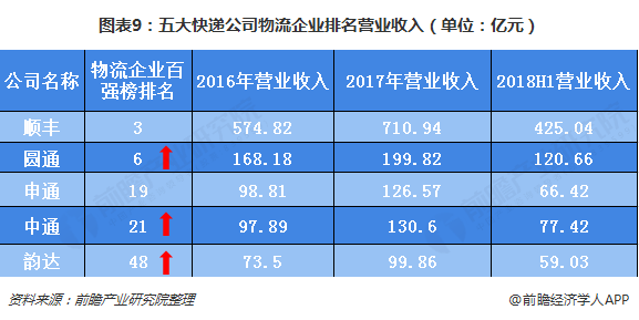 ——快遞業(yè)催生巨頭,挑戰(zhàn)傳統(tǒng)物流龍頭地位。近年來(lái),電子商務(wù)平臺(tái)的迅速發(fā)展帶來(lái)了居民購(gòu)物消費(fèi)的便利,快遞行業(yè)伴隨著網(wǎng)絡(luò)購(gòu)物的興盛而迎來(lái)爆發(fā)增長(zhǎng),以快遞業(yè)務(wù)為核心的物流企業(yè)實(shí)現(xiàn)了營(yíng)業(yè)收入的快速增長(zhǎng),對(duì)國(guó)內(nèi)物流競(jìng)爭(zhēng)格局帶來(lái)的巨大沖擊。被國(guó)內(nèi)消費(fèi)者所熟知的快遞企業(yè)順豐和“三通一達(dá)”,五家企業(yè)均位列2018年中國(guó)物流企業(yè)百?gòu)?qiáng)榜中,其中順豐控股旗下的順豐速運(yùn)有限公司已經(jīng)連續(xù)兩次評(píng)選中位列百?gòu)?qiáng)榜第三位。