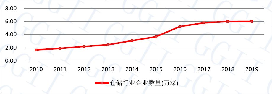 2010-2019年倉儲行業(yè)企業(yè)數(shù)量(單位:萬家)