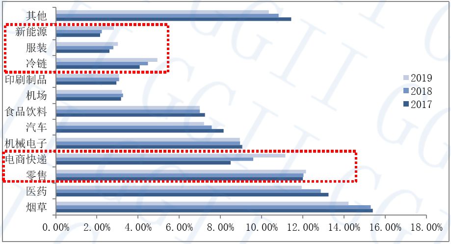 從自動化立體庫建設數(shù)量看來,GGII數(shù)據(jù)顯示,2019年自動化立體倉庫保有量6000座左右。其中,電商/快遞、零售、冷鏈行業(yè)等服務領域需求增速明顯較工業(yè)制造領域強勁,服裝、新能源等新興行業(yè)亦開始發(fā)力。