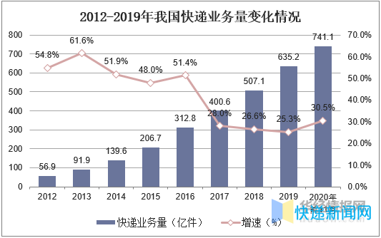 隨著互聯(lián)網(wǎng)和物流行業(yè)的快速發(fā)展,快遞業(yè)務(wù)已經(jīng)成為人們?nèi)粘I町?dāng)中不可或缺的重要組成部分。近年來(lái)我國(guó)快遞業(yè)務(wù)量快速增長(zhǎng),2018 年全國(guó)快遞服務(wù)企業(yè)業(yè)務(wù)量累計(jì)完成507.1 億件,同比增長(zhǎng)26.6%;2019年,全國(guó)快遞業(yè)務(wù)量完成635.2億件,同比增長(zhǎng)25.3%,連續(xù)6年穩(wěn)居世界第一。截至2020年11月,我國(guó)當(dāng)年快遞業(yè)務(wù)累計(jì)量為741.1億件,同比增長(zhǎng)30.5%。而隨著快遞業(yè)務(wù)的發(fā)展,對(duì)于快遞包裝材料的需求也在與日俱增,2018年我國(guó)快遞包裝材料消耗量達(dá)到941萬(wàn)噸。