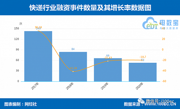 目前,物流快遞市場競爭主要是通過價格戰(zhàn)實現(xiàn)增量,以量為王、薄利多運成為現(xiàn)階段的主要特征。中小物流企業(yè)要獲得較大發(fā)展,不僅需要在細分領域深耕,與巨頭深度融合還需要獲得資本加持。但2020年受疫情影響,在投融資上,融資事件數(shù)和金額均同比下降。但2021年物流科技領域還將繼續(xù)保持相對較快的發(fā)展增速,資本市場也將逐漸回暖。