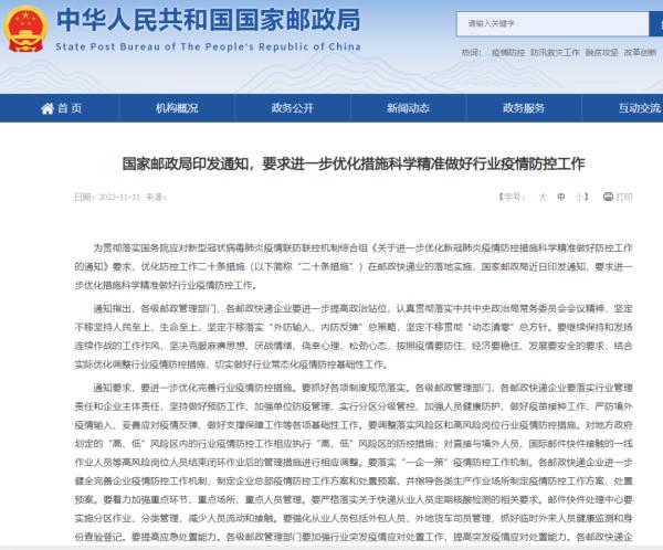 要落實(shí)“一企一策”疫情防控工作機(jī)制。各郵政快遞企業(yè)進(jìn)一步健全完善企業(yè)疫情防控工作機(jī)制,制定企業(yè)總部疫情防控工作方案和處置預(yù)案,并指導(dǎo)各類生產(chǎn)作業(yè)場所制定疫情防控工作方案、處置預(yù)案。