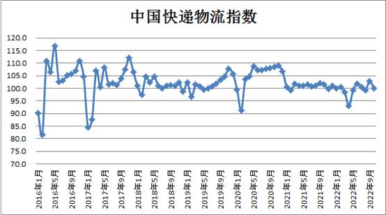 10月快遞物流指數(shù)為99.9%,環(huán)比回落3個(gè)百分點(diǎn)