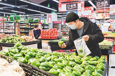 圖為日前,顧客在山東省青州市一家超市選購(gòu)蔬菜。  王繼林?jǐn)z(人民視覺(jué))