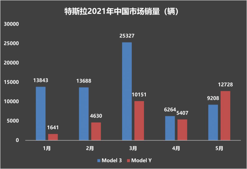 一個(gè)更值得關(guān)注的數(shù)據(jù)是,今年 5 月,Model Y 在中國市場(chǎng)的銷量,首次超過了 Model 3(Model 3 銷售 9208 輛,Model Y 銷售 12728 輛),在中國新能源車型銷量榜中排第二,僅次于宏光 MINI。