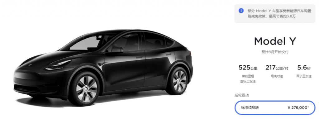 7 月 8 日,特斯拉正式上線 Model Y 標(biāo)準(zhǔn)續(xù)航版,續(xù)航里程 525 公里,百公里加速 5.6 秒,最高車速 217 公里 / 小時(shí)。最重要的是,起售價(jià)只有 27.6 萬元,讓很多人驚掉了下巴。
