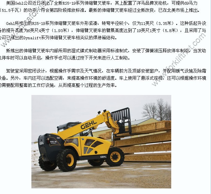 Gehl全新伸縮臂叉裝車符合第四階段排放標(biāo)準(zhǔn)
