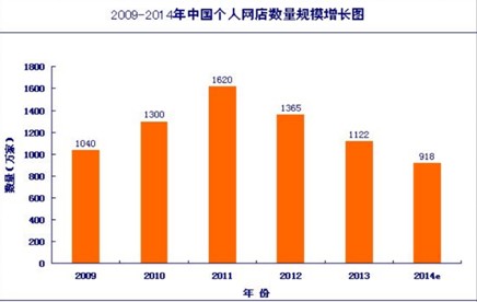圖8:2009-2014年中國個人網(wǎng)店數(shù)量規(guī)模增長圖