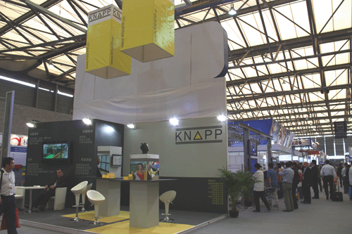 總部位于奧地利格拉茨的科納普(Knapp AG),同樣是倉(cāng)儲(chǔ)物流自動(dòng)化領(lǐng)域世界領(lǐng)先的物流系統(tǒng)解決方案供應(yīng)商。在CeMAT展會(huì)上,科納普的展臺(tái)別具特色,被設(shè)計(jì)成為一個(gè)迷你的物流中心,里邊集合了具有代表性的OSR穿梭系統(tǒng)和服裝懸掛系統(tǒng)。