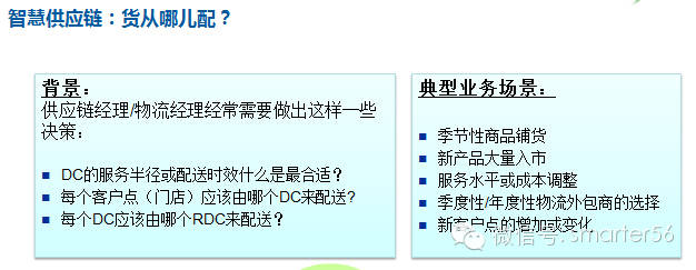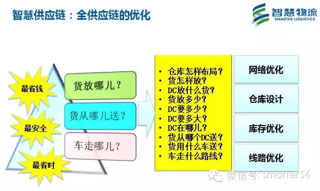 本期為《突破生鮮供應鏈管理瓶頸》系列專題的最后一期,將給大家?guī)碜钪腔?,也最具挑?zhàn)的《供應鏈優(yōu)化》。在協(xié)同基礎上,企業(yè)期望能夠通過大數(shù)據(jù)分析、優(yōu)化決策等可以實現(xiàn)對供應鏈資源的優(yōu)化配置和調(diào)度。幫助解決“貨放哪兒”、“貨從哪兒配”、“車走哪兒”三類供應鏈決策性問題。