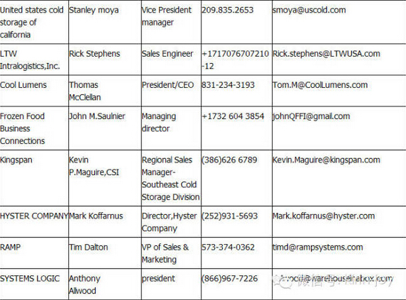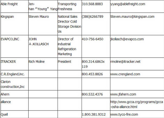 國際冷藏協(xié)會(IARW)、全球冷鏈聯(lián)盟(GCCA)、美國冷藏公司Tracy、Lake city(USCS)、C.R.England物流公司、Able Freight 運(yùn)輸公司、太古冷藏(Swire)、美國菲普斯冷藏公司(PFS)等