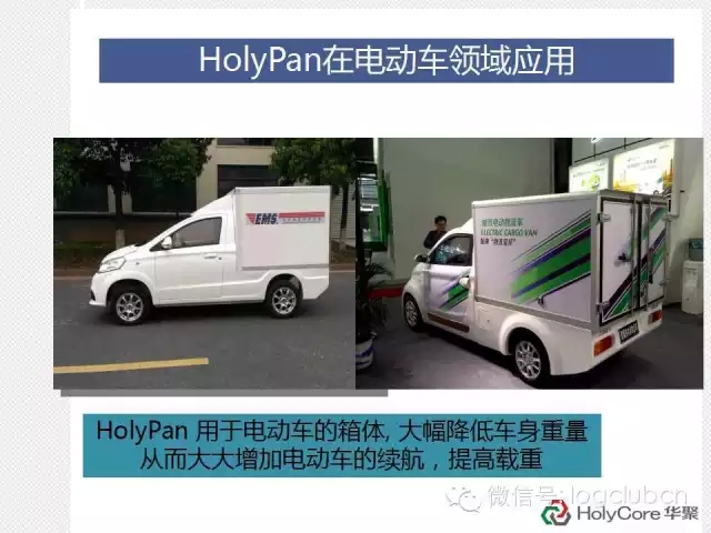 另外我們在國內(nèi)也做了很多工作,這幾年我們也和國內(nèi)的一些大型的汽車廠進(jìn)行合作,這張圖是東風(fēng)在去年漢諾威車展上展出的車子,后面這張是東風(fēng)在香港的一些車輛。這張圖片是柳汽的,柳汽這兩年應(yīng)該說在上海地區(qū)快遞物流這一塊,做定制物流這一塊所以說反響還是比較好的。而最早的柳汽國四的三臺車輛有兩臺是用我這個(gè)材料,輕量化車廂一下子降低其百公里油耗,增加了市場競爭力,包括百世匯通在中央財(cái)經(jīng)頻道做廣告的時(shí)候,就綠色物流這一塊做宣傳時(shí)就是使用華聚板材配套的輕量化車廂。這張圖片是江淮,我們做好車廂了以后,這臺車是在定遠(yuǎn)跑過20萬公里的路試的,大家可能看到這個(gè)車廂比較淡薄,但是無論是路試實(shí)驗(yàn)還是三年多幾百輛車輛實(shí)實(shí)在在使用數(shù)據(jù)顯示,板材強(qiáng)度是完全沒有問題的。這張圖片是今年江淮經(jīng)銷商大會的時(shí),拿我們材料制作的車廂作為樣車展示,包括今年5月上海車展,福田歐馬可和奧鈴也都是標(biāo)配華聚板材車廂。早幾年在那么多樣車的制作時(shí),我相信大家還可能是停留在做數(shù)據(jù)上面,大家可能會說自己不關(guān)心這個(gè)油耗,因?yàn)槲锪鞴径际前o司機(jī)或者包給誰了,是否省油和公司本身無關(guān),但是這兩年,我相信大家觀念不一樣了,司機(jī)賺到了錢,降低了成本,整個(gè)生態(tài)圈運(yùn)行才會越來越順暢。