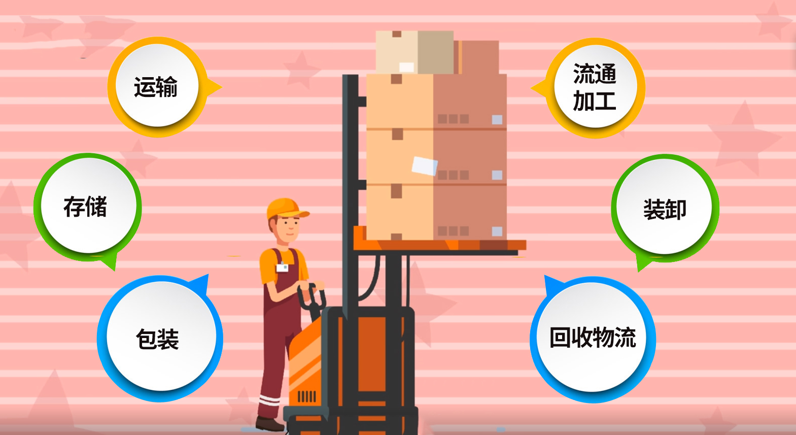物流活動主要包括運輸、儲存、包裝、流通加工、裝卸、回收物流等。