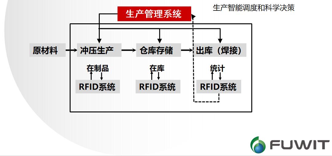 不同的車間有不同的需求,RFID系統(tǒng)在實(shí)施的時(shí)候,就需要根據(jù)這些不同的需求,制定不同的解決方案。比如在沖壓和焊接車間,我們就重點(diǎn)管控沖壓原料件的生產(chǎn)數(shù)量、庫(kù)存數(shù)量,和出庫(kù)數(shù)量,實(shí)現(xiàn)這些環(huán)節(jié)的數(shù)據(jù)流精確統(tǒng)計(jì),就可以為整個(gè)生產(chǎn)管理系統(tǒng)的智能調(diào)度和科學(xué)決策提供數(shù)據(jù)支撐。