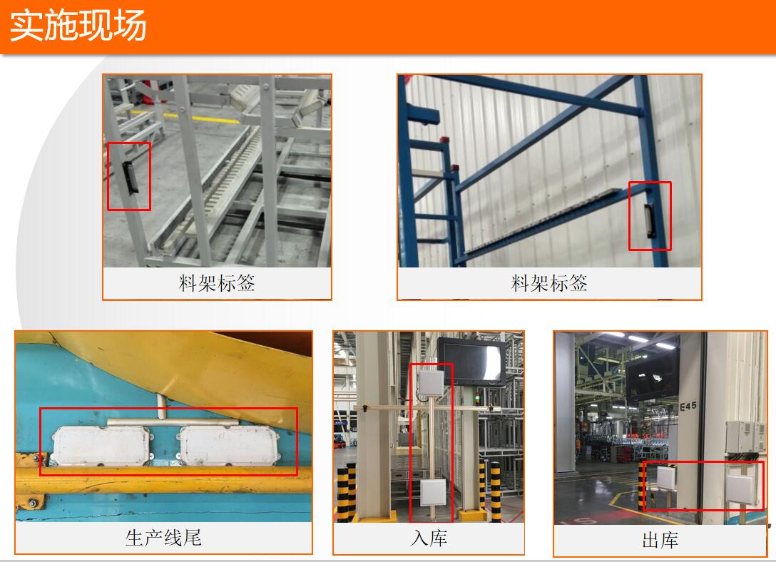 在轉(zhuǎn)運(yùn)沖壓件的料架上安裝RFID電子標(biāo)簽,在各車間關(guān)鍵節(jié)點(diǎn)安裝RFID讀寫(xiě)器,實(shí)現(xiàn)產(chǎn)品和設(shè)備的智能通訊,為MES等信息系統(tǒng)有效提供數(shù)據(jù)采集和處理。
