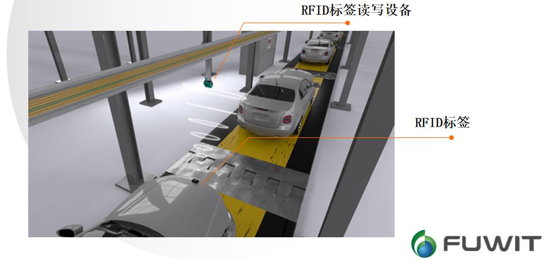 在車輛上線之前,工作人員將初始化的RFID標(biāo)簽安裝在車體前部引擎蓋上表面。在車輛后續(xù)的車架組裝、底盤(pán)懸掛、動(dòng)力總成、內(nèi)外飾整合等工序,安裝RFID讀寫(xiě)設(shè)備,在車身達(dá)到相應(yīng)工位是,自動(dòng)掃描車身VIN條碼,完成生產(chǎn)線車輛監(jiān)控和數(shù)據(jù)采集等工作。