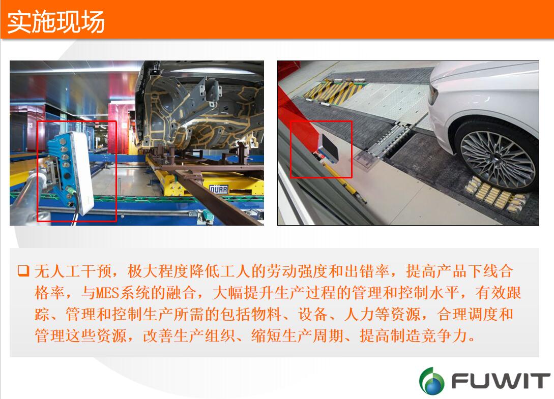 這兩張圖顯示了實(shí)際現(xiàn)場(chǎng)的一個(gè)設(shè)備安裝圖,代表了兩個(gè)不同總裝環(huán)節(jié)的應(yīng)用情況,其基本的共性:通過(guò)RFID這樣一個(gè)簡(jiǎn)便的自動(dòng)識(shí)別技術(shù),實(shí)現(xiàn)物物信息的精準(zhǔn)和快速識(shí)別,幫助后端的MES系統(tǒng)進(jìn)行科學(xué)的決策,從而提高企業(yè)生產(chǎn)效率,改善組織,縮短生產(chǎn)周期,提高企業(yè)的綜合競(jìng)爭(zhēng)力。