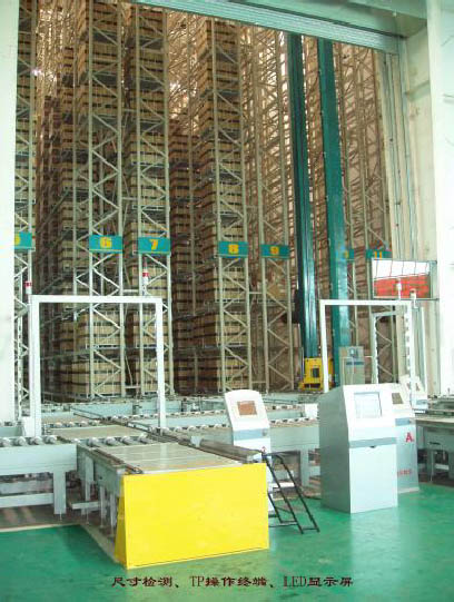 (2)入出庫(kù)輸送區(qū)設(shè)入出庫(kù)水平輸送機(jī)系統(tǒng)1 套,由鏈?zhǔn)捷斔蜋C(jī)、輥式輸送機(jī)和曲柄式輥?zhàn)由蹬_(tái)等單機(jī)(超過(guò)200 臺(tái)設(shè)備)組成。該系統(tǒng)可完成入出庫(kù)輸送作業(yè),將人工或叉車(chē)裝卸作業(yè)與巷道堆垛機(jī)存取作業(yè)銜接起來(lái)。入庫(kù)口配置條形碼閱讀器及單元貨物外形尺寸和重量檢測(cè)裝置,以保證合格的單元貨物安全入庫(kù)。出庫(kù)口配置LED 顯示屏,顯示出庫(kù)貨物信息及揀選和抽樣要求。