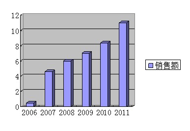 盡管公司今年年初才搬至新廠,但大家適應(yīng)能力很強(qiáng),在新的環(huán)境里得到了更好地發(fā)展。上半年,我司銷售額達(dá)1.5個(gè)億,已經(jīng)是上海市同行業(yè)銷售產(chǎn)值第三名,生產(chǎn)能力以及規(guī)模已在同行業(yè)處于第一名。而前兩位排名公司是已在該行業(yè)有二十多年的歷史,鑫鵬在短短五年發(fā)展到這種程度離不開各部門員工的辛勤付出。圖為鑫鵬公司06~11年上半年度同期銷售額對(duì)比表(縱坐標(biāo)單位為千萬)。