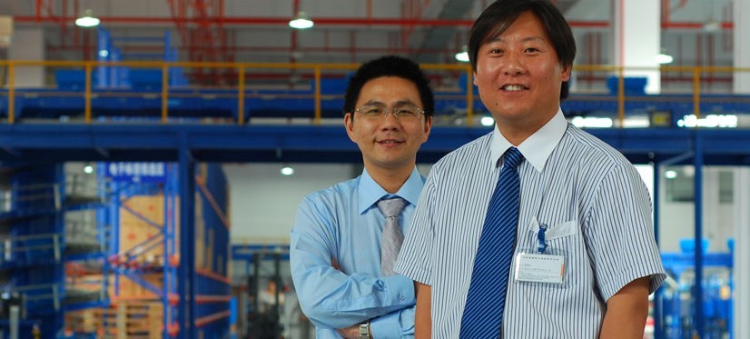 ---------工程技術(shù)主任竇鵬舉(右)與德馬泰克項目經(jīng)理蔡錦丹