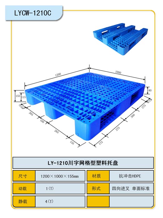 1250川字網(wǎng)格:1250*1000*155mm 動載:1T 靜載:4T 貨載:0.6T