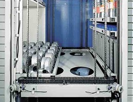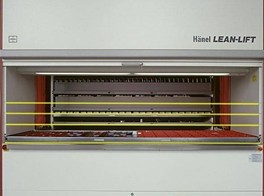 Haenel的垂直升降貨柜主體由由四塊側(cè)板組成。其側(cè)板既是貨柜的骨架,又是美觀(guān)的外墻,同時(shí)在內(nèi)側(cè)為托盤(pán)的支架。所有的物品都由這四塊側(cè)板提供支撐。Haenel的獨(dú)特設(shè)計(jì)可以保證貨柜在單位自重最小的情況下,達(dá)到最大的負(fù)重能力。