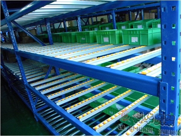 流利式貨架廣泛應用于制造業(yè),商業(yè),配送中心,裝配車間以及出貨頻率較高的倉庫流利式貨架:采用輥輪鋁合金,鈑金等流利條,利用臺架自重實現(xiàn)先進先出,存儲方便,適用于 裝配線兩側配送中心等場所。