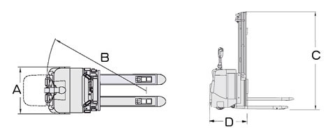 電動堆高機 SPE125L SPE160L 型號 SPE125L SPE160L 駕駛員位置 步進(jìn)式 額定負(fù)載 公斤 1250/1600 負(fù)載中心 毫米 600/600 全寬 A 毫米 790/790 轉(zhuǎn)彎半徑 B 毫米 1666/1696/2123① 1714/1744/2171① 護頂架高 C 毫米 --- 至貨叉垂直面的長度 D 毫米 877/901/1328② 918/948/1375② 注: ①不帶踏板/收起踏板/放下踏板 ②不帶踏板/收起踏板/放下踏板