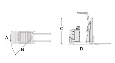 低位揀選車 OSE120CB(平衡重式低位揀選車) 型號(hào) OSE120CB 駕駛員位置 站駕式 額定負(fù)載 公斤 1200 負(fù)載中心 毫米 500 全寬 A 毫米 790 轉(zhuǎn)彎半徑 B 毫米 1636 護(hù)頂架高 C 毫米 2196 至貨叉垂直面的長(zhǎng)度 D 毫米 1703