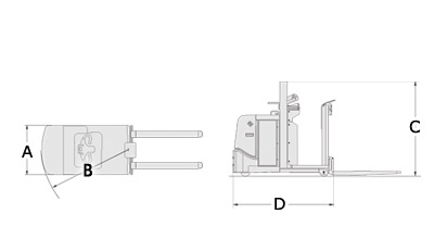 低位揀選車 OSE100 型號 OSE 100 OSE 120 OSE 250 駕駛員位置 站駕式 站駕式 站駕式 額定負(fù)載 公斤 1000 1200 2500 負(fù)載中心 毫米 600 1200 1200 全寬 A 毫米 790 790 790 轉(zhuǎn)彎半徑 B 毫米 1540 2271/2386 2196 護(hù)頂架高 C 毫米 1880 1370 1142 至貨叉垂直面的長度 D 毫米 1690 1406 1335