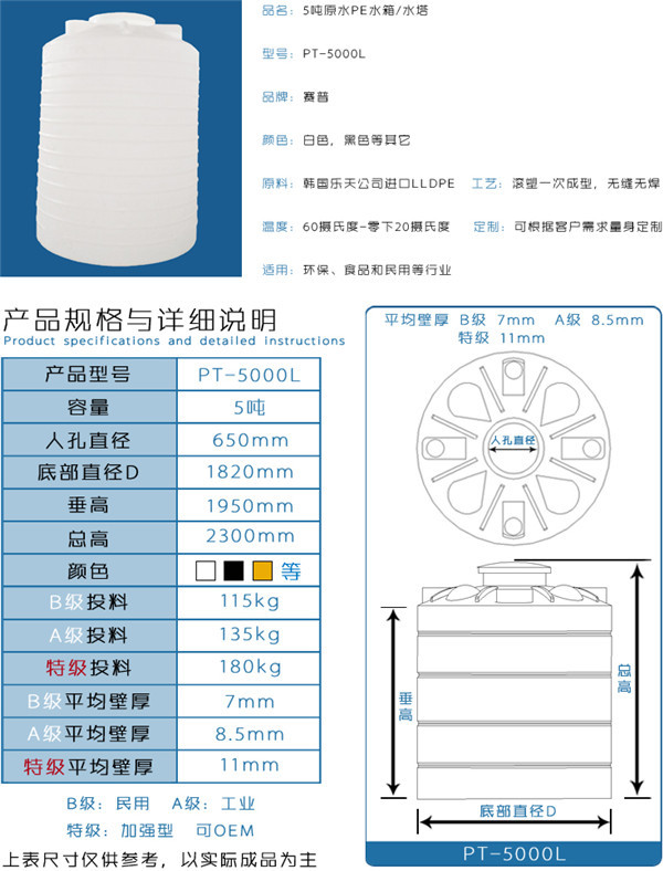 【產(chǎn)品名稱】:5000L水塔-塑料水箱/儲罐