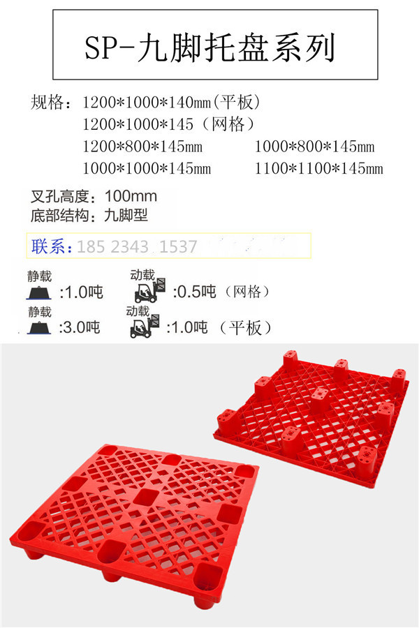 品名:塑料托盤 食品塑料托盤 出口倉儲托盤 叉車托盤 塑料棧板 地臺板 塑料防潮板 倉儲托盤 貨架托盤 平板托盤 九腳塑料托盤 網(wǎng)格塑料托盤