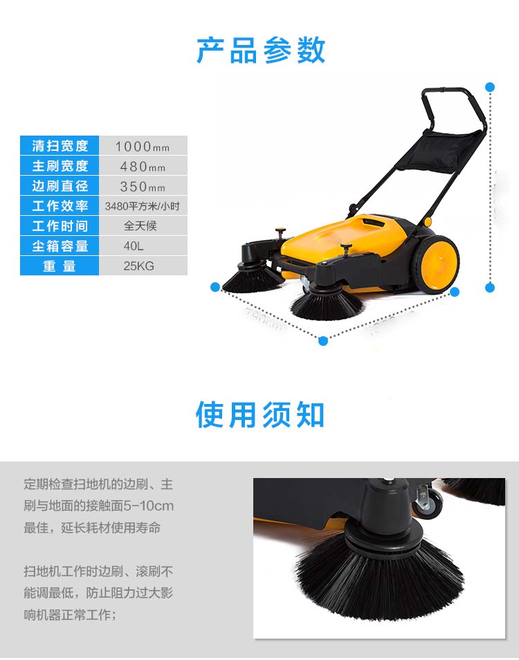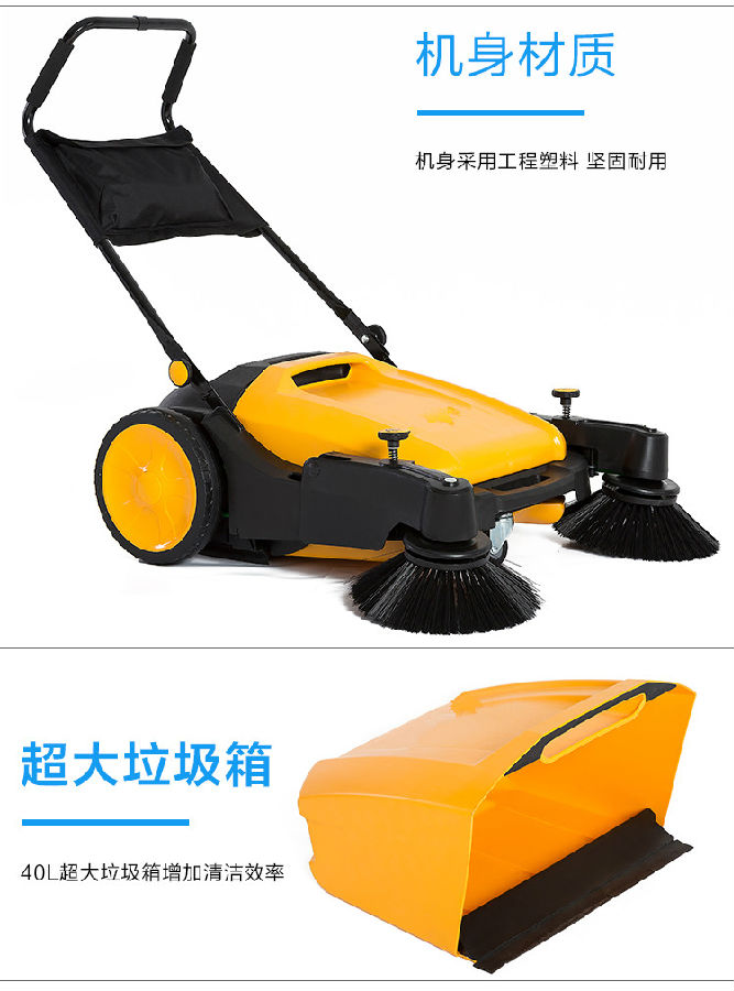 手推式無動(dòng)力掃地機(jī),無需任何機(jī)電動(dòng)力,靠后輪驅(qū)動(dòng),使得設(shè)備左右轉(zhuǎn)向清掃效果同樣好,同時(shí)提供非常好的方向控制。高質(zhì)量可調(diào)節(jié)滾刷適合清掃各種地面。堅(jiān)固的工程塑料機(jī)架,易于調(diào)整的主刷以及邊刷,能夠很好的實(shí)現(xiàn)對(duì)垃圾的清掃與收集。
