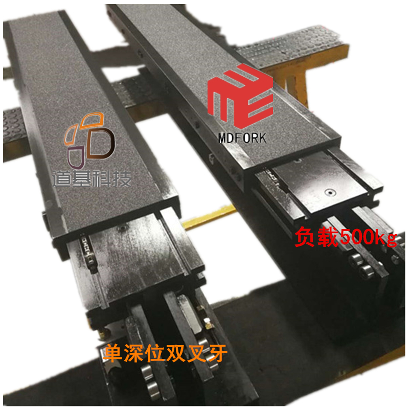 眾所周知,堆垛機(jī)伸縮貨叉分為單深位伸縮叉牙和雙(多)深位伸縮叉牙,而伸縮貨叉又存在多種工作形式:單根板式叉牙或雙根組合叉牙、多根組合叉牙。具體使用幾根貨叉是由立體庫存放的物料和托盤決定的,物料小、托盤小的一般使用單根牙叉或是單根板式牙叉,反之,則配置多根組合叉牙。