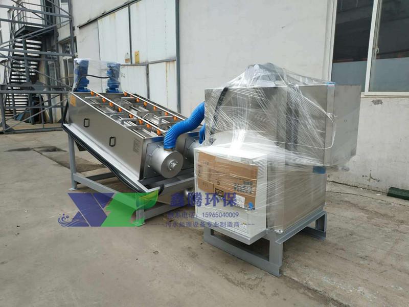 2、脫水:經(jīng)過濃縮的污泥隨著螺旋軸的轉(zhuǎn)動不斷往前移動;沿泥餅出口方向,螺旋軸的螺距逐漸變小,環(huán)與環(huán)之間的間隙也逐漸變小,螺旋腔的體積不斷收縮;在出口處背壓板的作用下,內(nèi)壓逐漸增強(qiáng),在螺旋推動軸依次連續(xù)運(yùn)轉(zhuǎn)推動下,污泥中的水分受擠壓排出,濾餅含固量不斷升高,最終實(shí)現(xiàn)污泥的連續(xù)脫水。