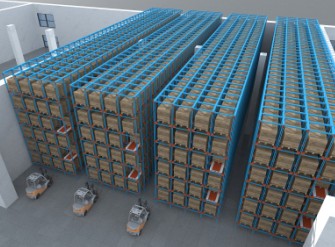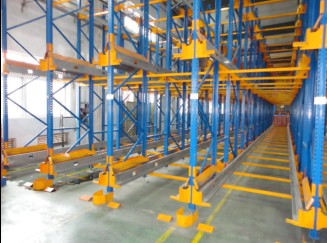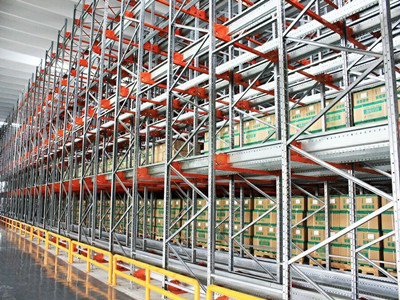 穿梭車貨架系統(tǒng)由穿梭車貨架、電池驅(qū)動的穿梭車、叉車三部分構(gòu)成,是依靠穿梭車在貨架軌道中自行堆棧的高密度托盤倉儲系統(tǒng)。其空間利用率比貫通式貨架更高。
