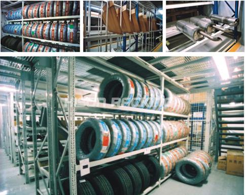 汽車配件貨架大多數(shù)采用閣樓貨架和中型貨架,另外根據(jù)一部分汽車配件的特別形狀,設(shè)計了適合其儲存的專用貨架。