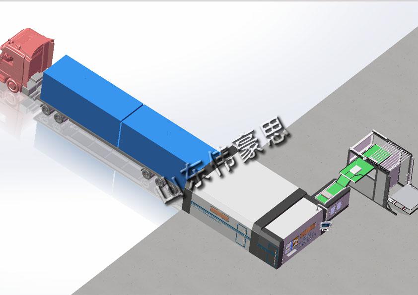 7.伸縮皮帶機將貨物按照設(shè)定順序擺放至集裝箱內(nèi);
